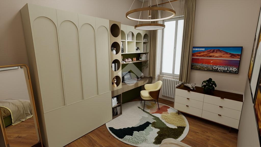 L'alloggio è posto al secondo piano di una palazzina dotata di ascensore, di cui è possibile acquistare la quota. L’ingresso si apre su un disimpegno che conduce ai vari ambienti. Attualmente l’appartamento è composto da sei stanze, versatili e facilmente adattabili a diverse esigenze: possono essere adibite a camere da letto, zona giorno o studio. Due di queste stanze godono, inoltre, dell’affaccio su balcone, offrendo luminosità. È presente un bagno finestrato. Completa la proprietà una cantinetta privata, comoda come spazio di deposito.