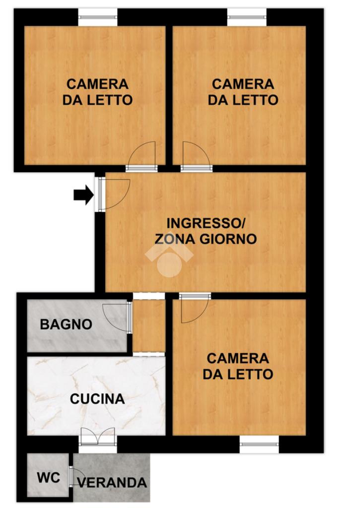 L’ingresso, ampio e ben proporzionato, rappresenta uno spazio versatile che può essere valorizzato come zona giorno. Da qui si accede alle tre camere matrimoniali, due affacciate su via Montenotte e una con esposizione sul cortile interno. Un comodo disimpegno conduce alla cucina con veranda lato cortile e al bagno.