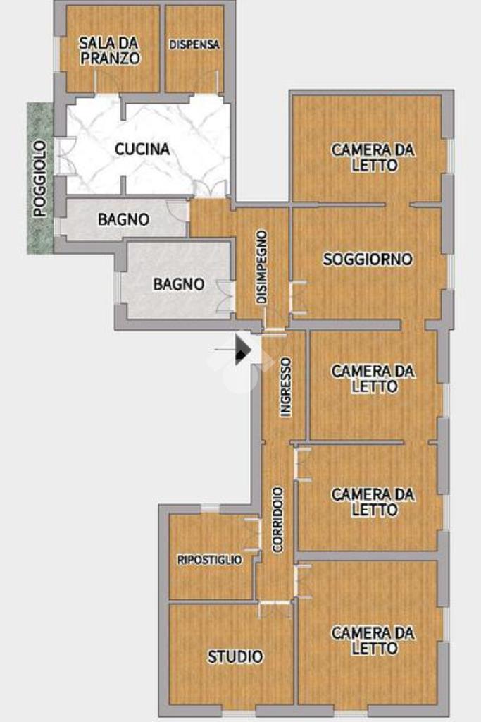 La distribuzione degli spazi consente di realizzare facilmente un doppio soggiorno e tre camere da letto di generose dimensioni, una delle quali impreziosita da soffitti affrescati originali e dal pavimento in mosaico veneziano, che conferiscono carattere e unicità.