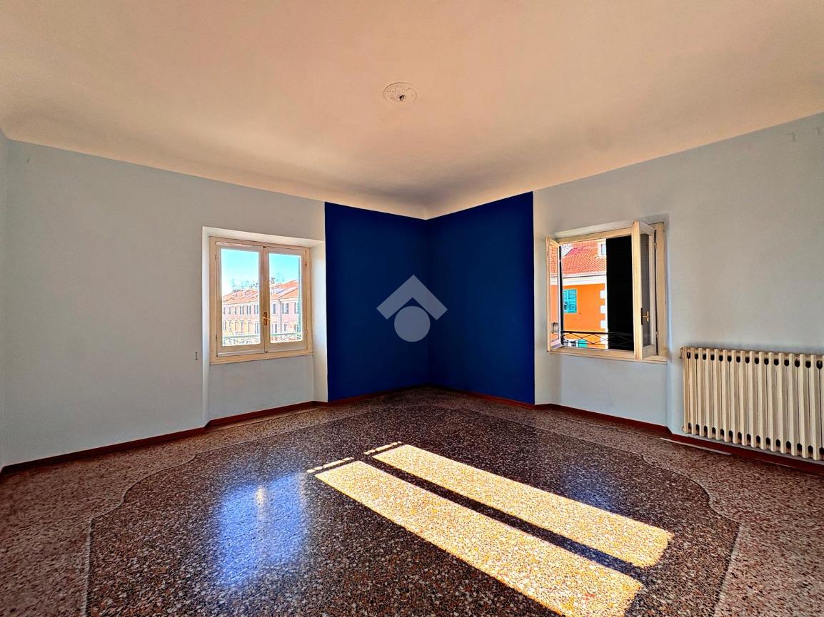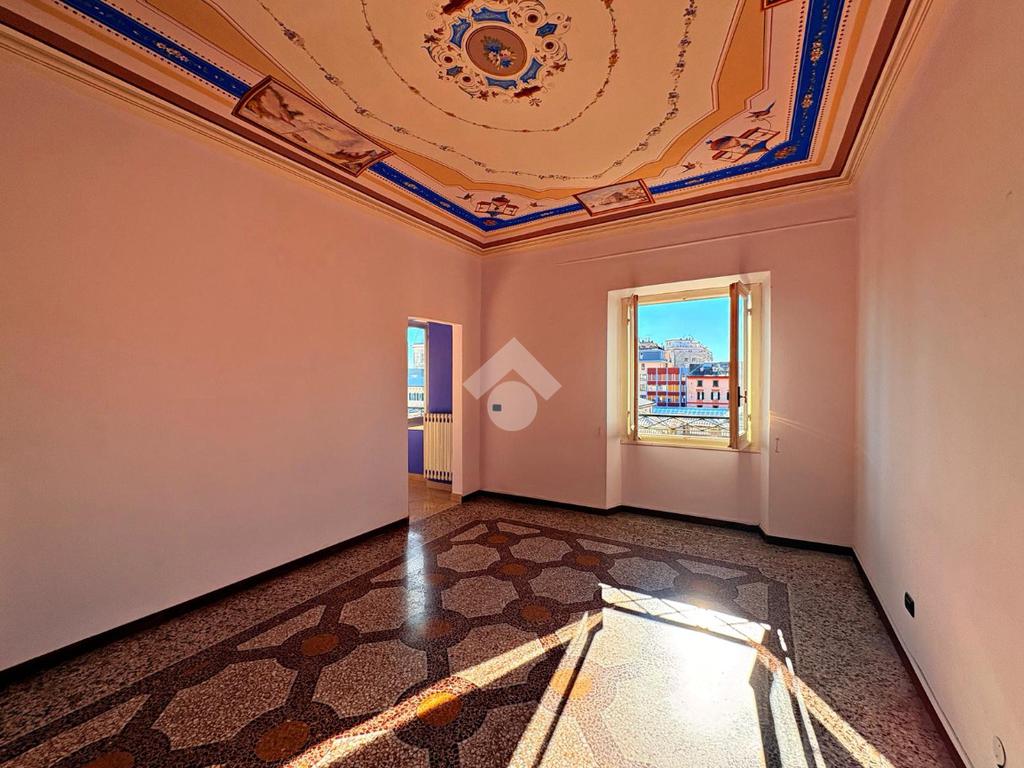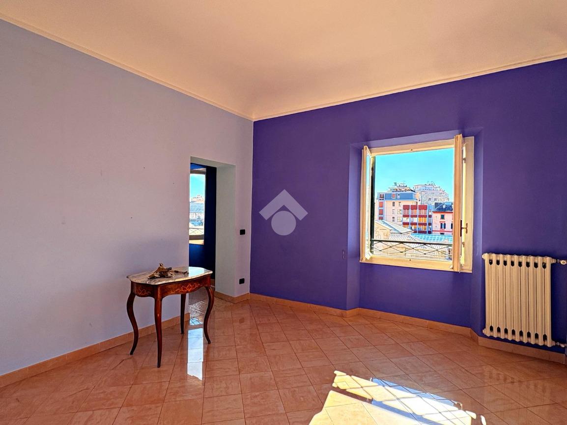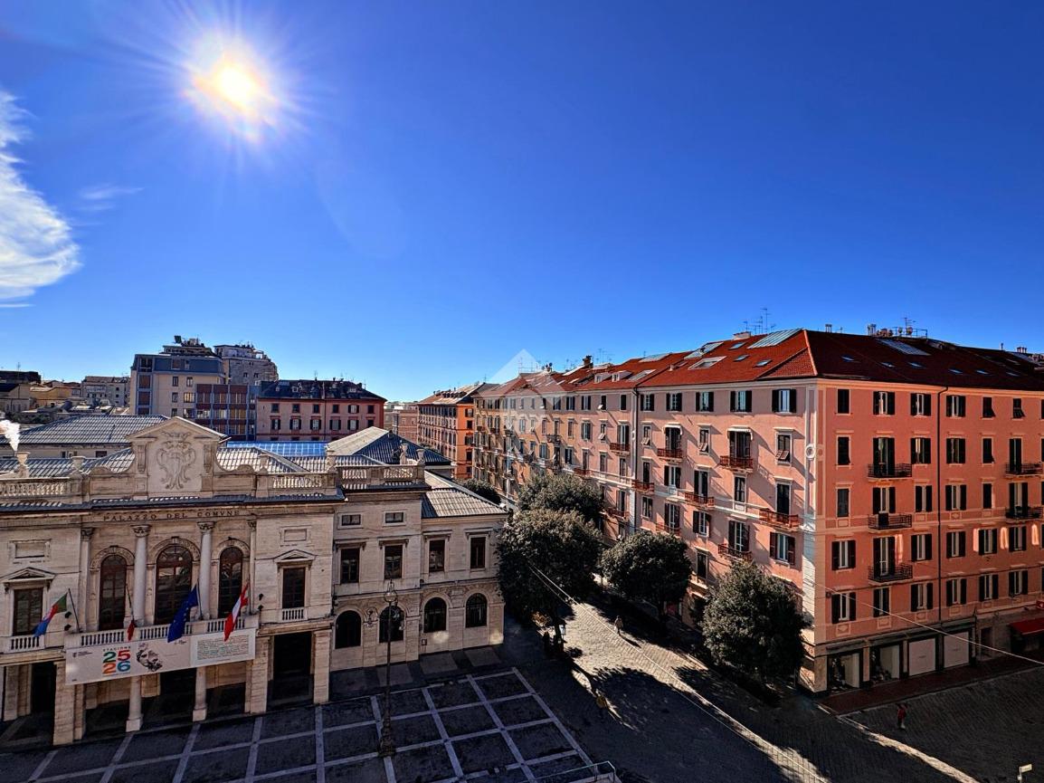 L'appartamento di ampia metratura al quinto e ultimo piano di un prestigioso palazzo del XVIII secolo con ascensore, nel centro di Savona, in Piazza Sisto IV.