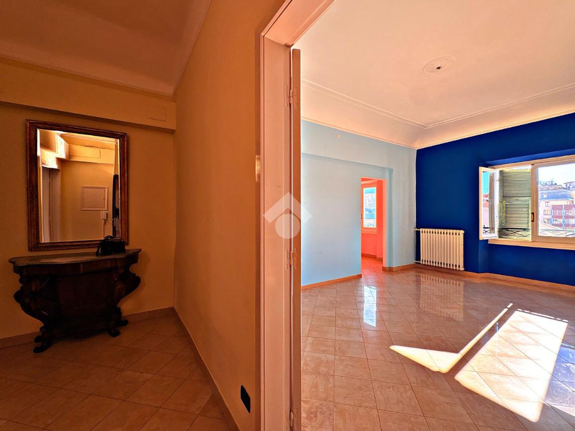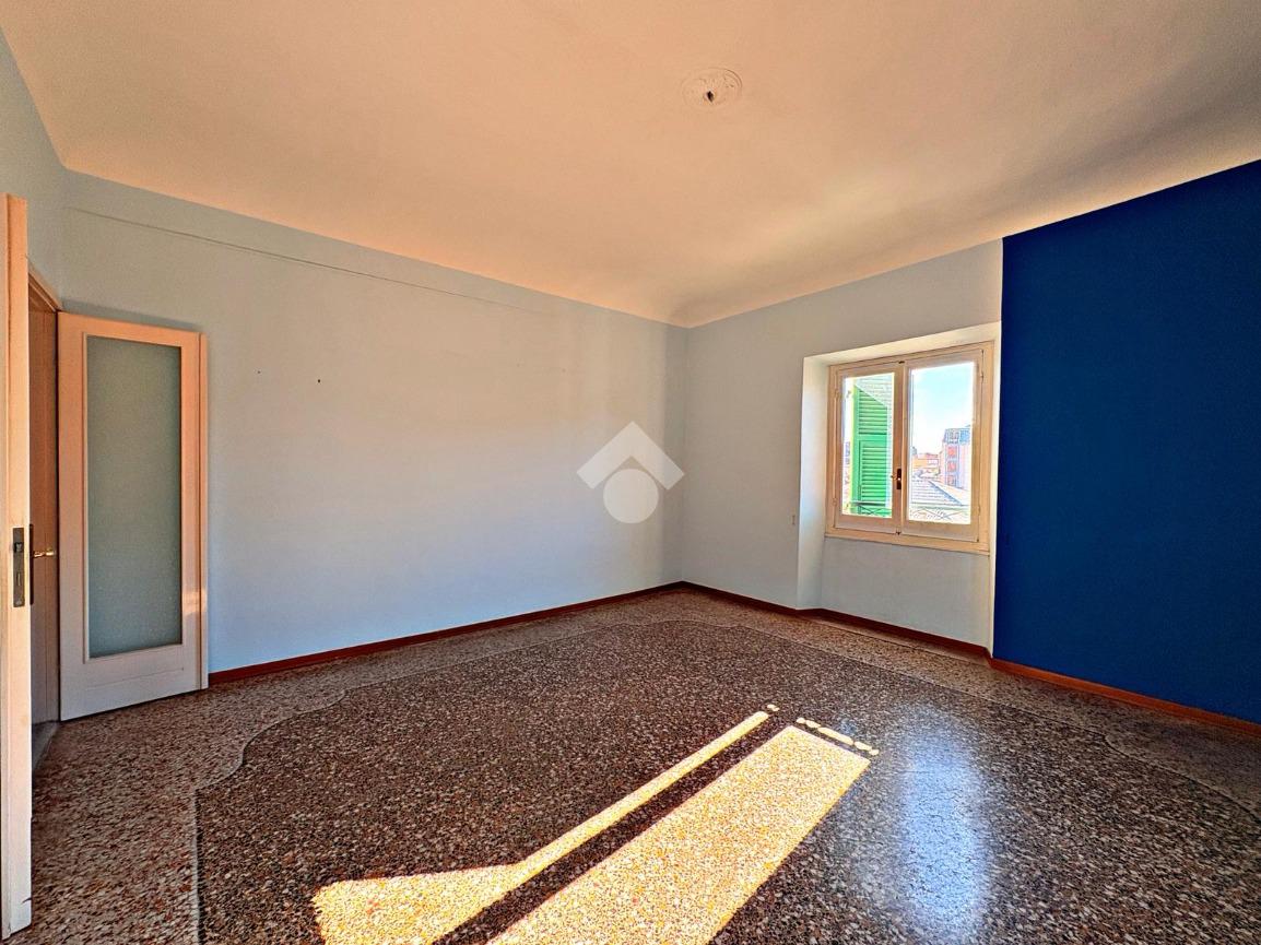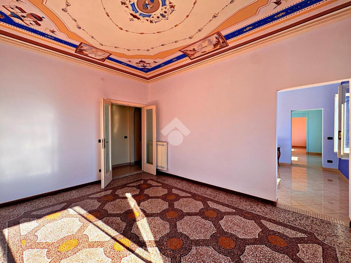 L'appartamento di ampia metratura al quinto e ultimo piano di un prestigioso palazzo del XVIII secolo con ascensore, nel centro di Savona, in Piazza Sisto IV.